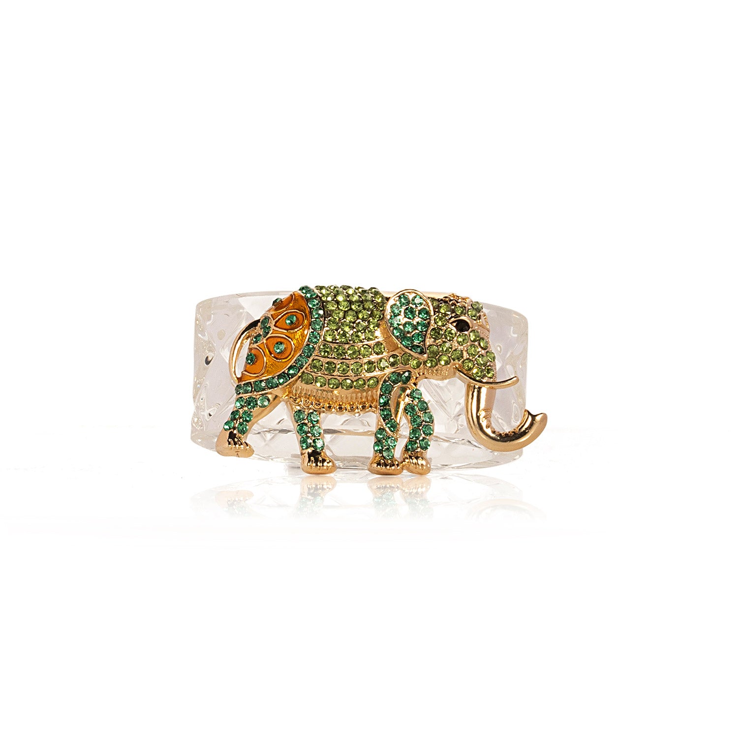 Handcrafted with semi-precious stones, the Elephant Napkin Rings add a touch of opulence to any table decor. Available in vibrant green or rich orange tones, each ring showcases a golden elephant adorned with intricate stone work. Whether facing left or right, these napkin rings bring a unique blend of artistry and luxury, perfect for elevating special gatherings or as distinctive gifts.