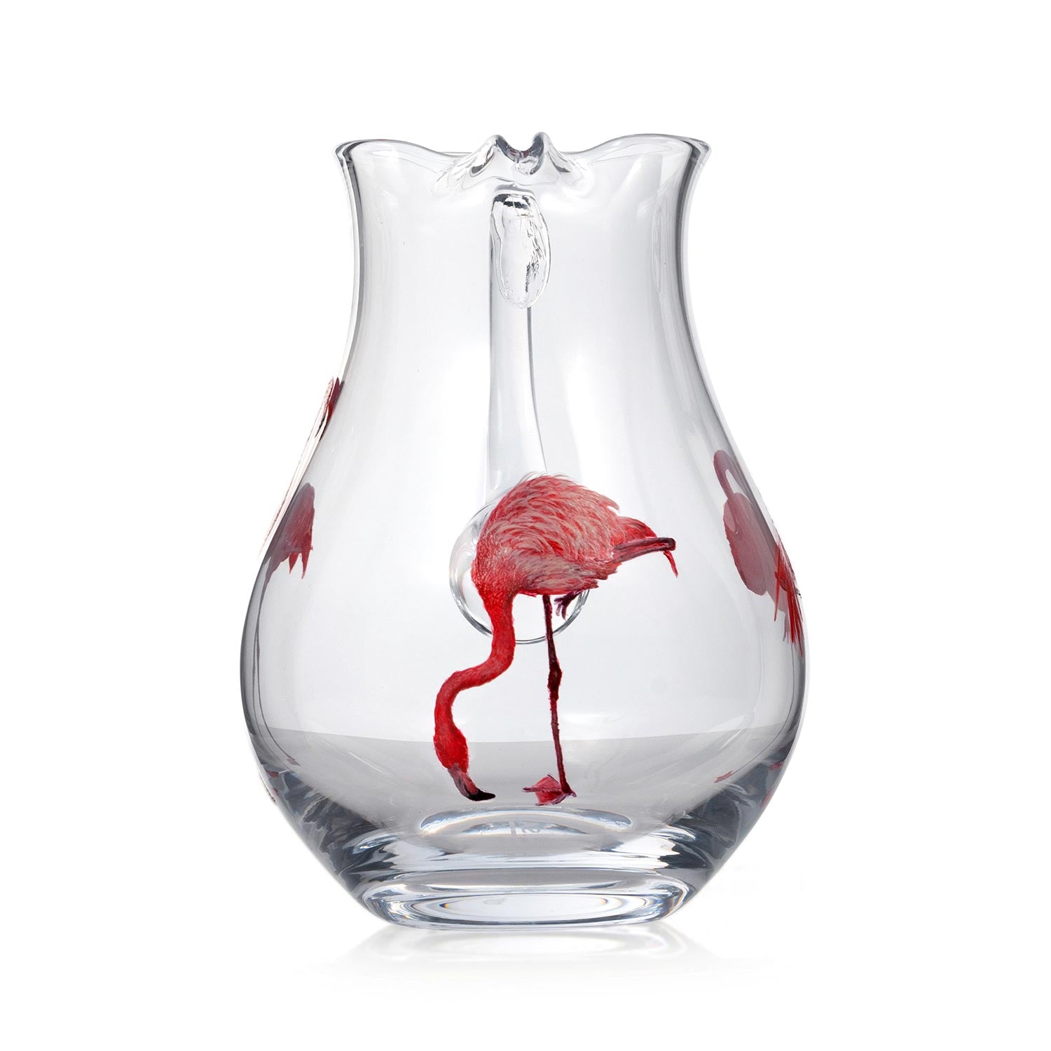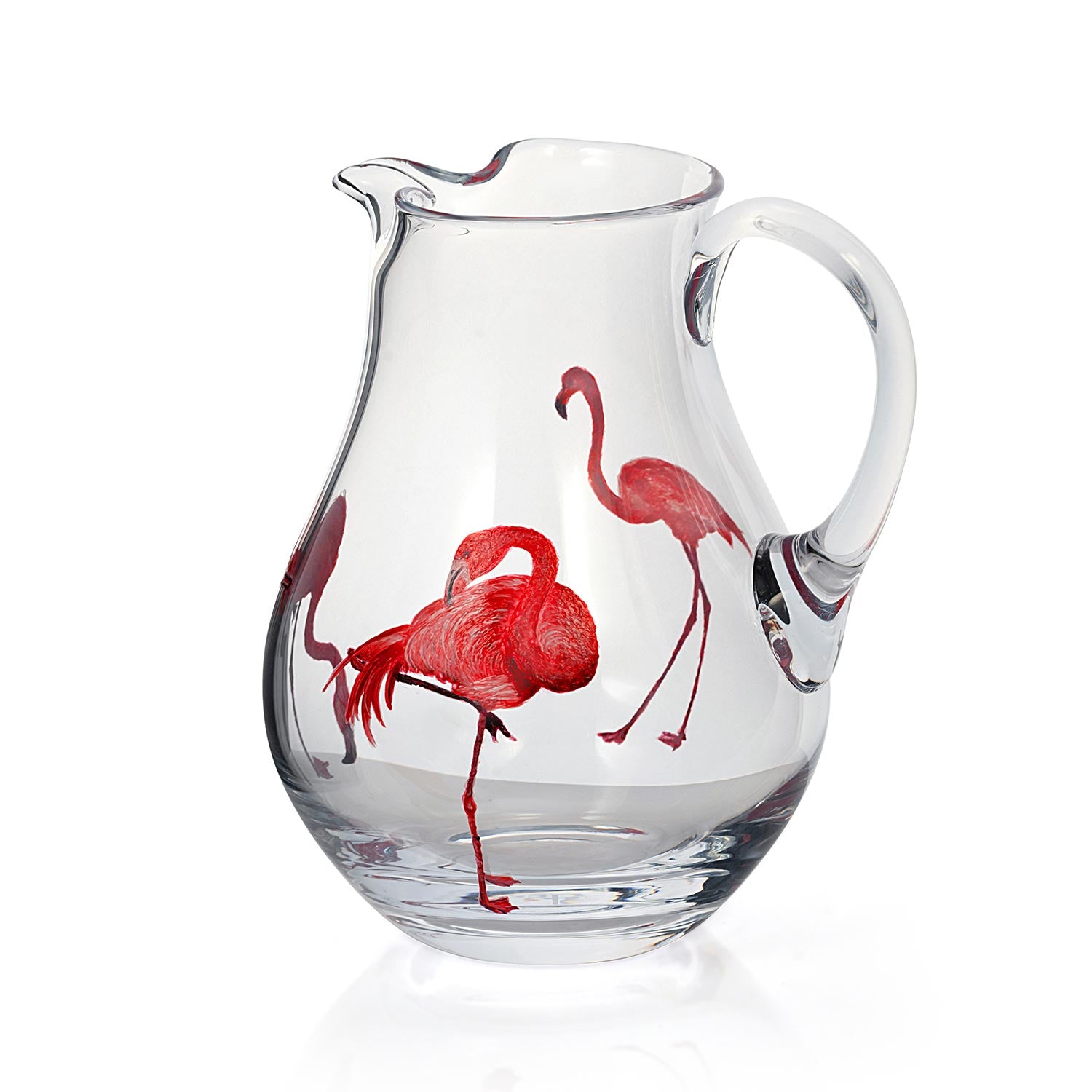 The Flamingo Jug is a stunning example of hand-painted fine crystal. Embracing a vibrant red flamingo design, this jug adds a splash of color and sophistication to your table. The hand-painted artwork captures the grace and beauty of flamingos, making it a unique and eye-catching piece. Ideal for serving beverages, this jug combines functionality with decorative appeal, enhancing any dining experience.