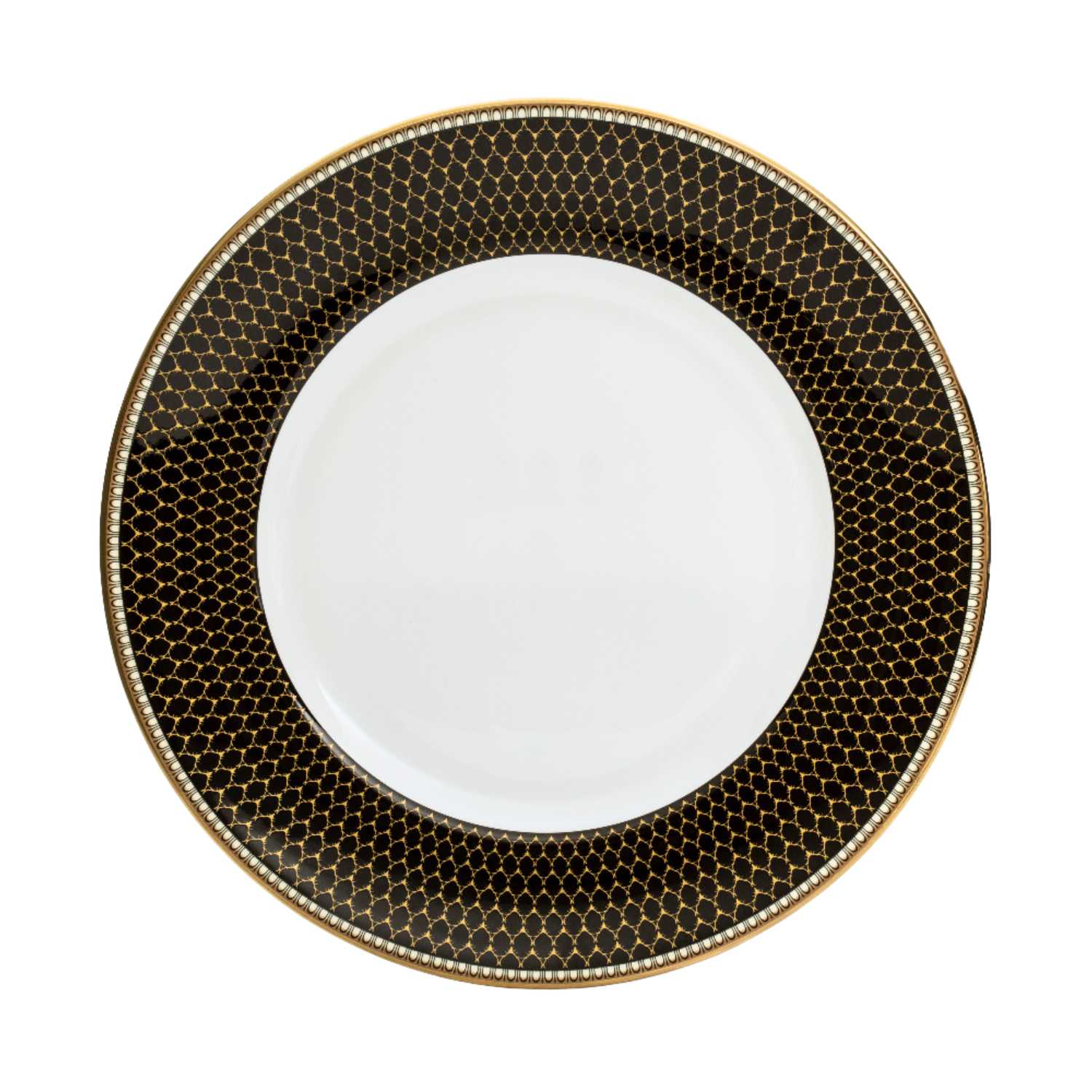 Add a touch of elegance to your table with the 8" Black Plate from the Antler Trellis collection. Handcrafted from fine bone china, its striking black finish enhances the intricate antler trellis design. Perfect for any occasion, this plate combines timeless sophistication with exceptional craftsmanship. Gilded with 24ct gold. Size:D: 152mm