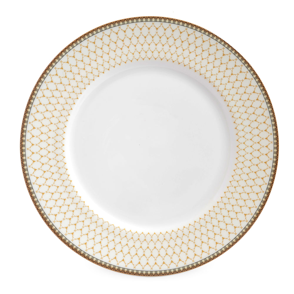 Add a touch of elegance to your table with the 8" Dark Green Plate from the Antler Trellis collection. Handcrafted from fine bone china, its elegant ivory finish enhances the intricate antler trellis design. Perfect for any occasion, this plate combines timeless sophistication with exceptional craftsmanship. Gilded with 24ct gold. Size:D: 203mm