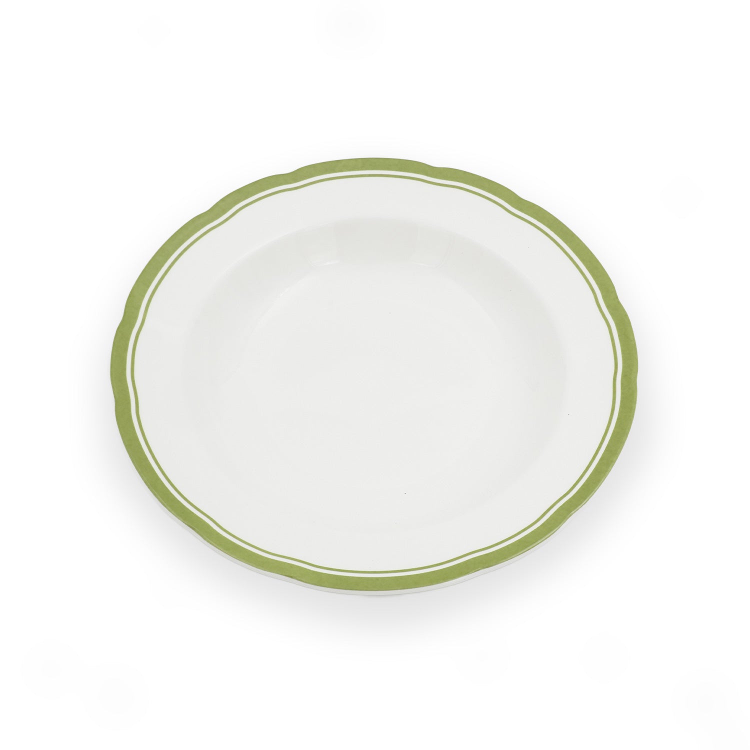 Green Border Audley Scalloped Rim Soup Bowl 9"