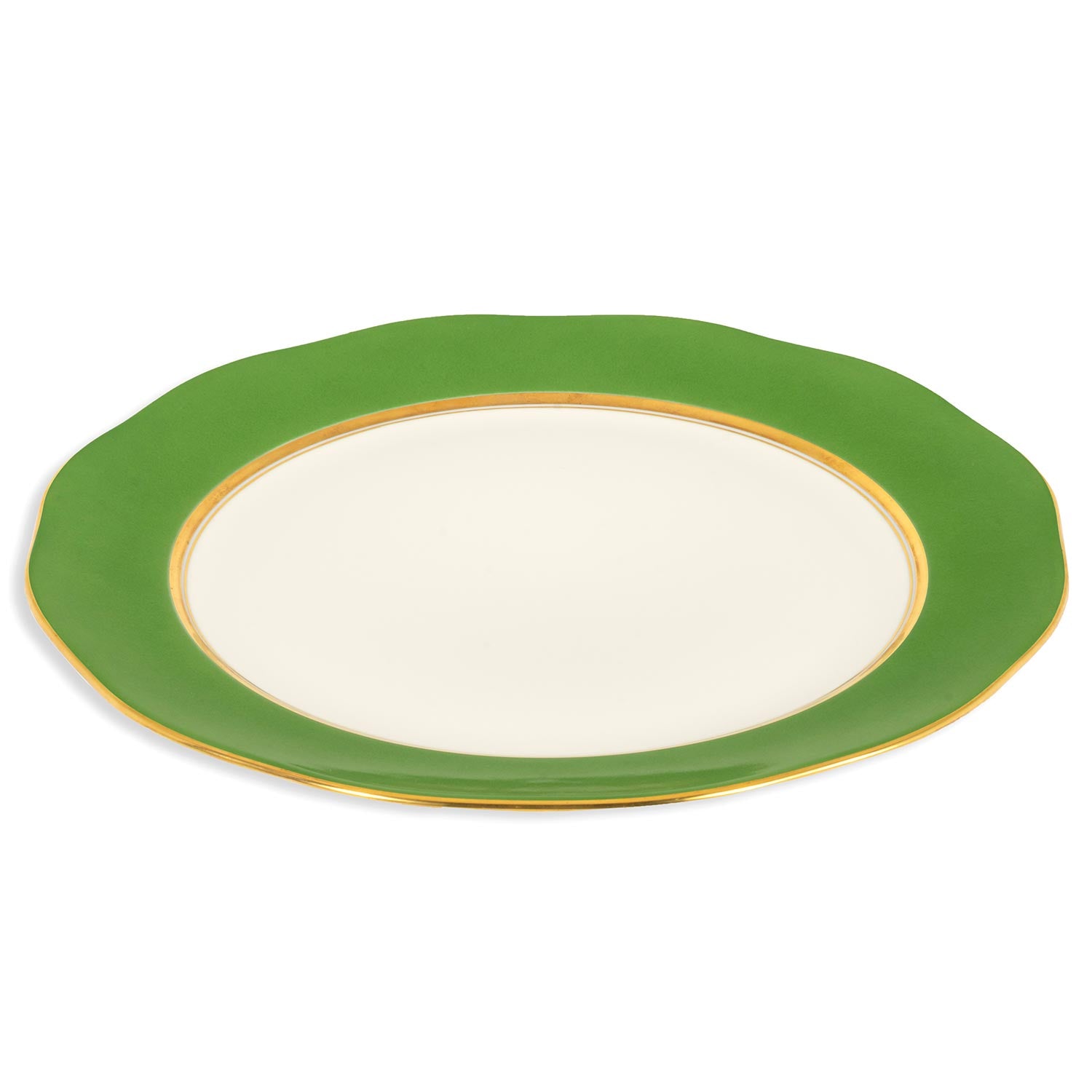 Multipurpose in nature, the Herend round dish comes with a pale finish. Enclosed in the middle is a fine gold painted circle that further comes with a heavy green order. The dominant outer layer has a rough wavy outline, highlighted by 24k gold paint. Use this dish for dinner, or a snack, or hang it on the wall as a tapestry, all it will do is get you compliments and elevate the sophistication in the room.