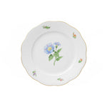 The Gustave Morning Glory Side Plate is meticulously hand-painted and adorned with a radiant 24K gold rim, making it perfect for serving salads or bread. Crafted from fine porcelain, it measures 19 cm in diameter. Designed for those who appreciate simplicity and detail, the plate features a prominent floral centerpiece with yellow, red, blue, and purple tulips, roses, and dahlias painted with delicate brushwork and framed by green leaves. This central design is bordered by three small colorful flowers set against a gold-accented wavy edge. Honoring Herend’s centuries-old floral painting tradition, this elegant pattern is available in twelve unique variations.