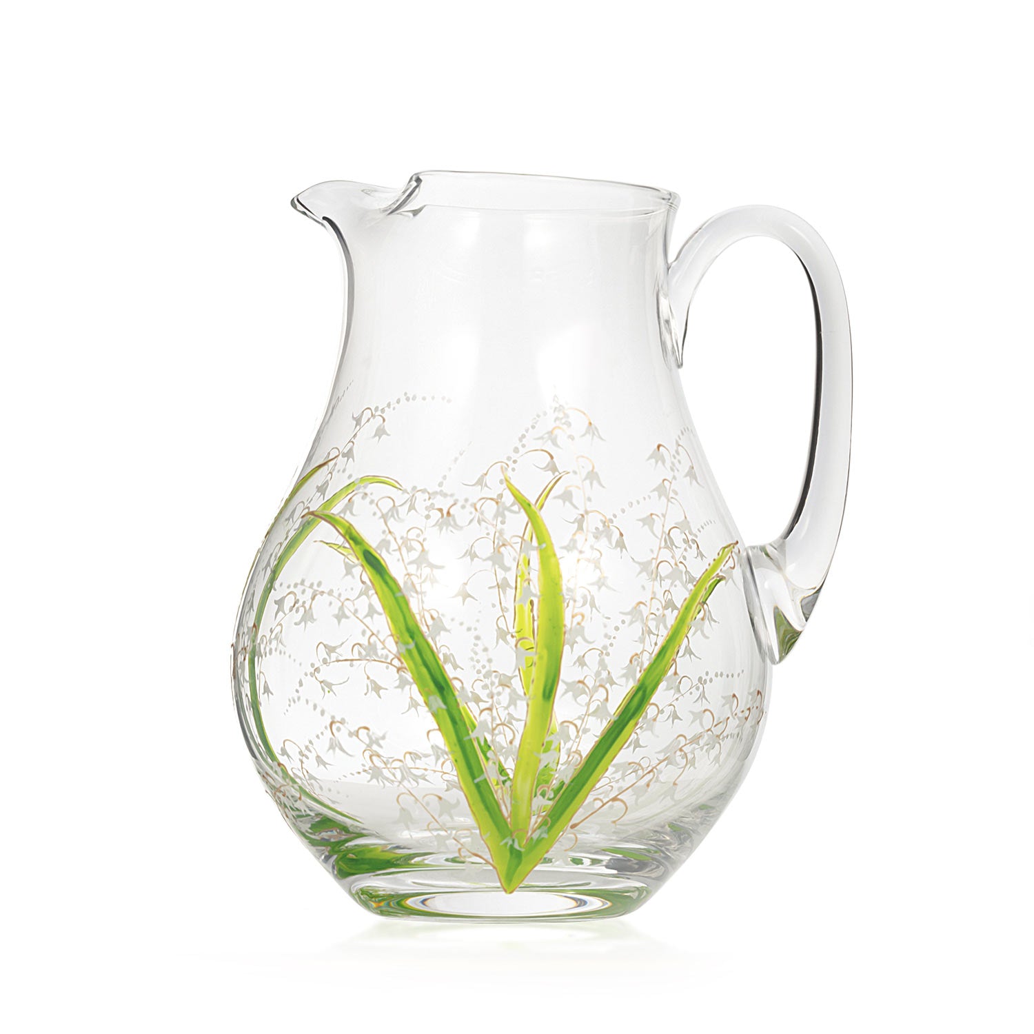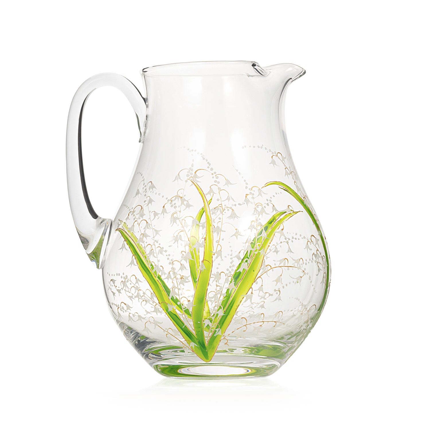 The Lilly Water Jug is a fine crystal masterpiece, hand-painted with intricate lily patterns in white and green. This elegant jug combines functionality with decorative appeal, making it perfect for serving water or beverages. The hand-painted floral design adds a touch of sophistication to your table, enhancing your dining experience with its timeless beauty.