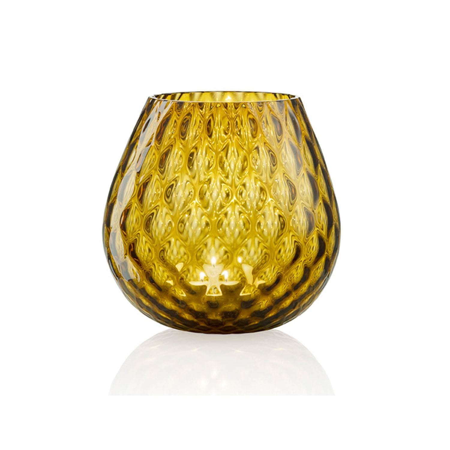 The Macramè are inspired by the shape of cognac glasses. Their main feature is the optical effect defined by the light that breaks on the particular ÒballotonÓ workmanship.