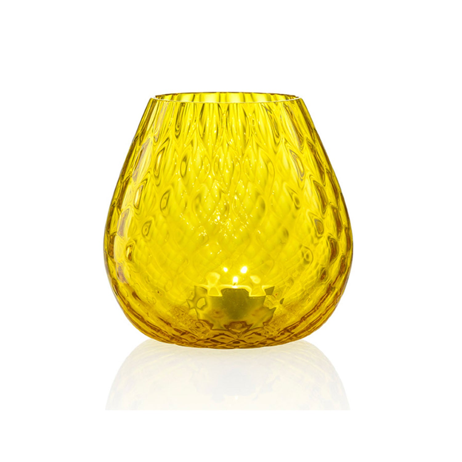 The Macramè are inspired by the shape of cognac glasses. Their main feature is the optical effect defined by the light that breaks on the particular ÒballotonÓ workmanship.