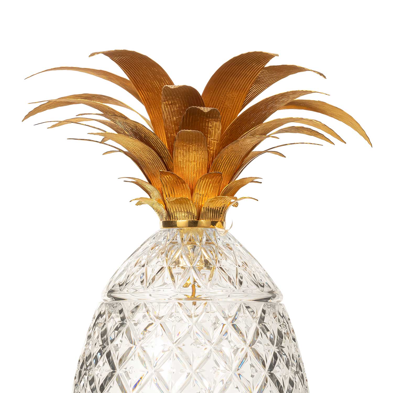 Crystal Pineapple Centrepiece - Medum, a unique and lavish addition to any home. This Centrepiece is crafted from fine crystal, featuring a striking pineapple-shaped design. The mouth is elegantly low, and the stems of the pineapple form a lid adorned in golden hues. Limited edition and meticulously hand-cut, it exudes sophistication and charm, perfect for serving honey with style. Whether as a functional piece or a decorative accent, it adds a touch of luxury and warmth to your table setting or home decor.