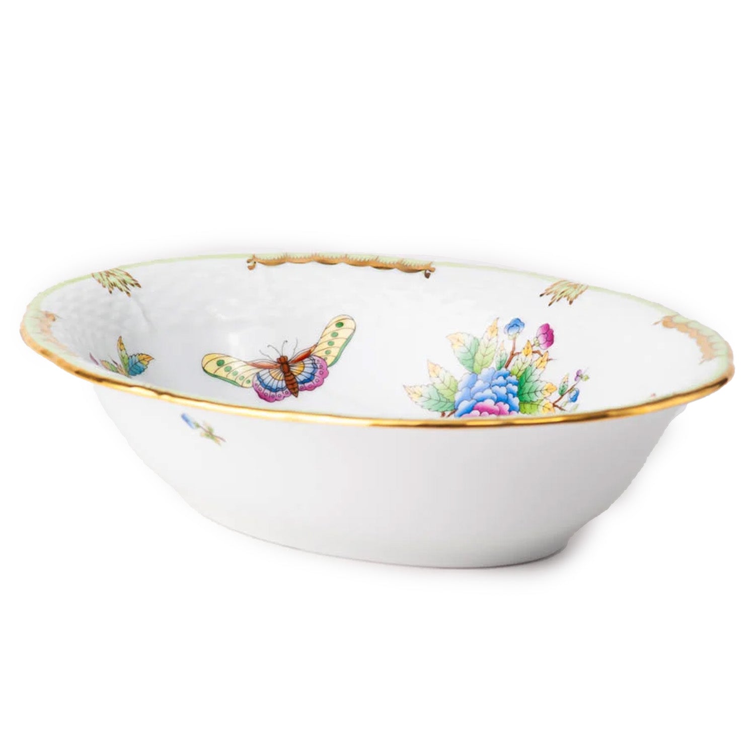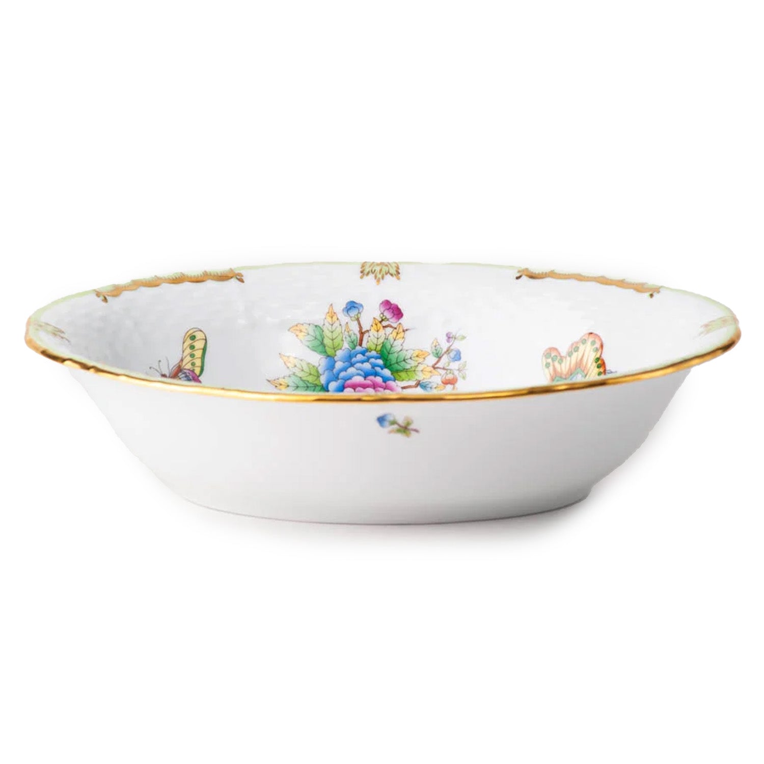 The Queen Victoria Serving Bowl is meticulously hand-painted and finished with 24K gold accents, designed to make a striking presentation at any table. It measures 25cm in diameter.