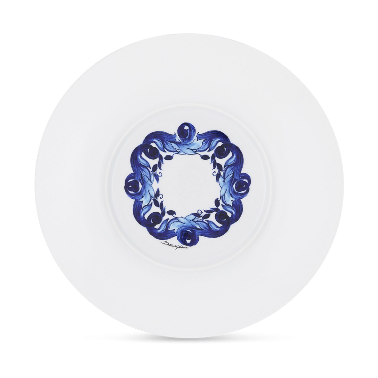 Experience the essence of Blu Mediterraneo with this set of 2 porcelain side plates from Dolce&Gabbana. Immerse yourself in a sensorial journey for the mind, where scents, sounds, and sensations converge with delicate and familiar aesthetics. Perfect for those who desire to express their unique personality through a stunning mise en place, these plates feature subtle raised details achieved through expert Italian craftsmanship. With scratch and abrasion-resistant production techniques, these elegant coup design plates are adorned on both sides.