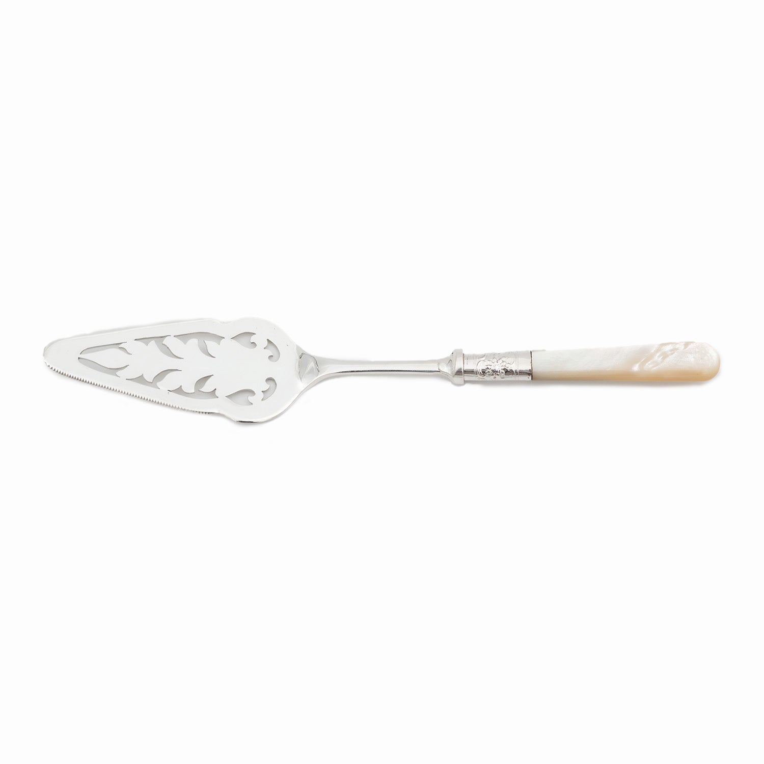 Elevate your dessert presentation with the Faux Shell and Silver Cake Server. This expertly crafted piece features a beautifully detailed faux shell design paired with a polished silver finish, combining elegance and functionality. Ideal for serving cakes with precision, it offers both durability and style, making it an essential tool for refined entertaining and professional catering.
