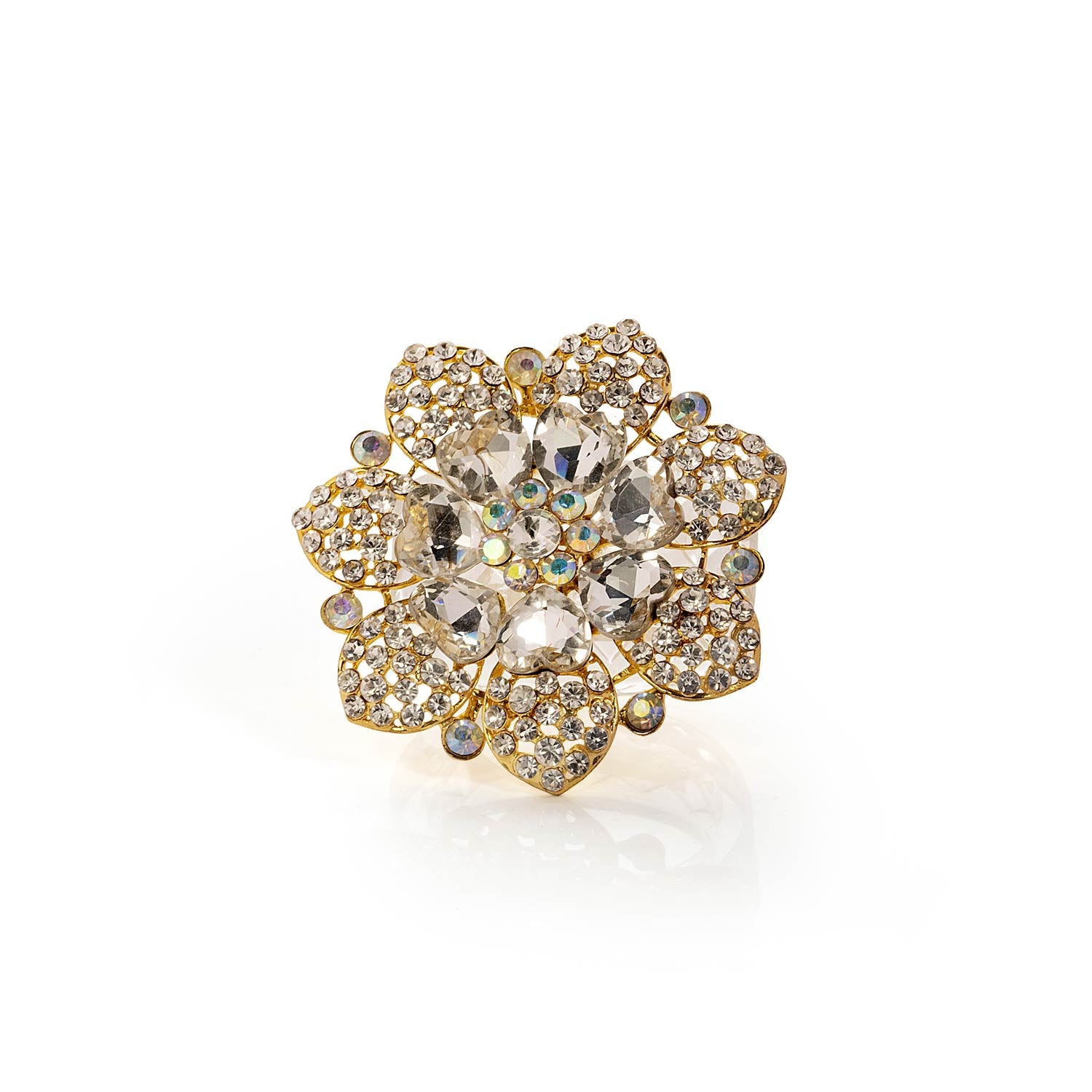 The Solitaire Napkin Ring features a stunning solitaire ring-like design in the shape of a flower, adorned with crystals and golden accents. Handmade with intricate craftsmanship, this napkin ring combines elegance with a touch of sparkle, perfect for enhancing the sophistication of your table decor. Ideal for formal dining occasions or special celebrations, it adds a luxurious and glamorous flair to every dining experience.