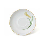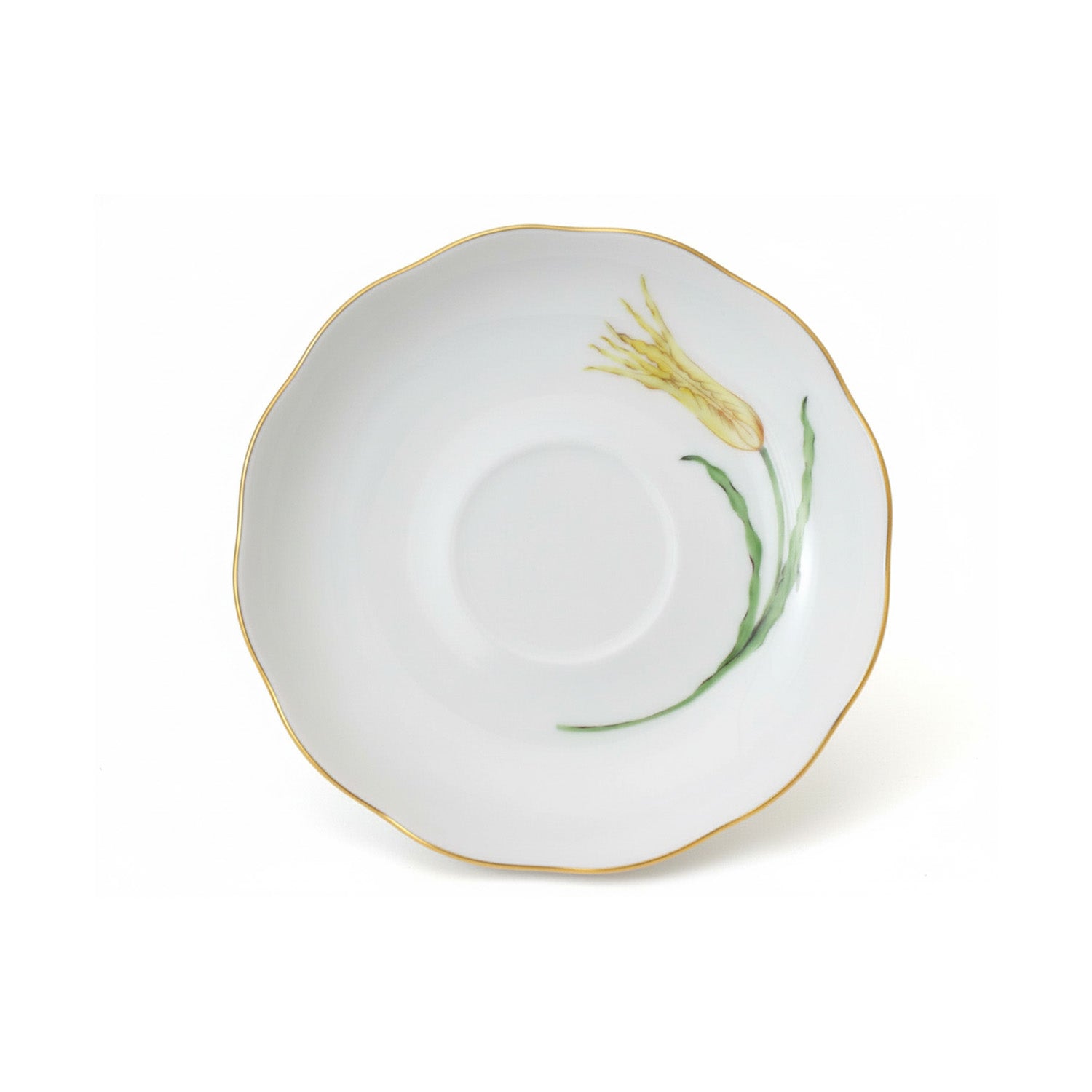 Yellow Tulip Tea Saucer is meticulously hand-painted and framed by 24K gold accents, completing the elegance of your tea set. It measures 14cm.